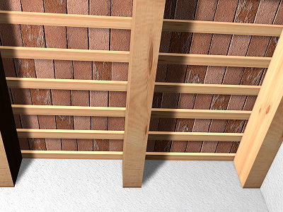 Losa tradicional con un intereje de 50 cm, de viguetas de madera aserrada de pino silvestre (Pinus sylvestris), de 10x20 a 15x25 cm de sección y hasta 6 m de longitud, clase resistente C18, protección de la madera con clase de penetración NP2, trabajada en taller, entrevigado compuesto de alfarjías de madera tratada de 7x3 cm y ladrillo cerámico visto macizo de elaboración manual (tejar), rojo, 24x11,5x3,5 cm colocado por tabla; y malla soldada tipo 6x6 10/10 de acero Grado 70, en capa de compresión de 4 cm de espesor de concreto liviano HLE-25/B/10/IIa, densidad entre 1200 y 1500 kg/m³, (cantidad mínima de cemento 275 kg/m³), premezclado. |