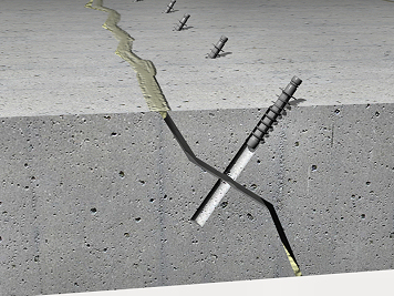 Colocación de inyectores internos de polietileno cada 20 cm, en fisura de elemento de concreto, dentro de taladros de entre 6 y 25 mm de diámetro, secantes al plano de la fisura, realizados a tresbolillo; y sellado superficial de la fisura con adhesivo tixotrópico de dos componentes a base de resina epoxi. |