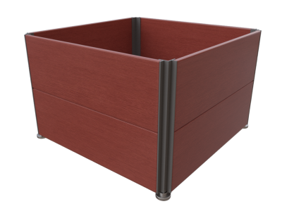 Macetera de 70x70x45 cm, con paneles de resina fenólica de color marrón y estructura de perfiles de acero con protección antioxidante y pintura de color negro. | ||