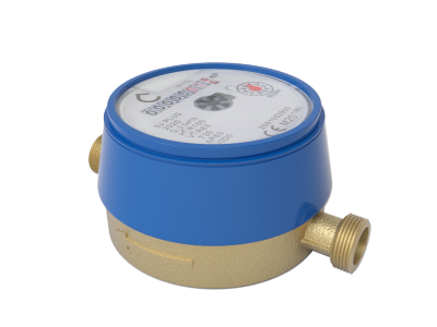 Contador de agua fría de lectura directa, de chorro simple, caudal nominal 1,5 m³/h, diámetro 1/2", temperatura máxima 30°C, presión máxima 16 bar, apto para aguas muy duras, con tapa, racores de conexión y precinto. | ||