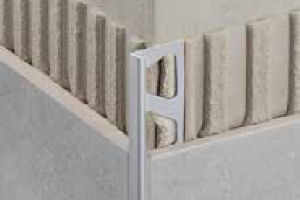 Perfil de aluminio anodizado, acabado natural, Schlüter-JOLLY-J 60 AE "SCHLÜTER-SYSTEMS", de 6 mm de altura y 2,5 m de longitud, con perforaciones trapezoidales para su fijación, para la protección de esquinas exteriores en revestimientos con piezas cerámicas.