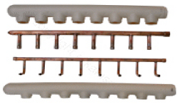 Conjunto de dos colectores, uno para la línea de líquido y otro para la línea de gas, de 4 salidas cada uno, modelo RBM-HY1043E "TOSHIBA", con un rango de capacidad total de las unidades interiores conectadas aguas abajo de menos de 14,2.