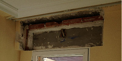 Recibido de bastidor para cajón de persiana, con pasta de yeso de construcción.