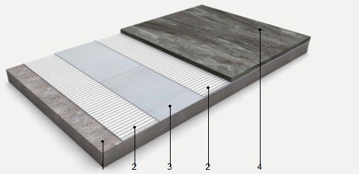 | Desolidarización bajo pavimento cerámico o de piedra natural, con láminas de elastómero de celdas cerradas | ||