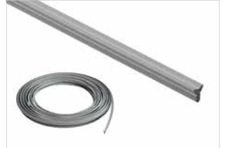 Perfil en T para juntas de partición en pisos de cerámica, de PVC, Schlüter-DILEX-FCS 90 "SCHLÜTER-SYSTEMS", de 9 mm de altura y 3,5 mm de anchura, con alas con perforaciones trapezoidales para su fijación y recubierto de CPE, con junta de absorción de movimientos de silicona para perfil, Schlüter-DILEX-FIS 300 BW "SCHLÜTER-SYSTEMS", de 3,5 mm de anchura, color blanco RAL 9010 acabado brillante. | ||
